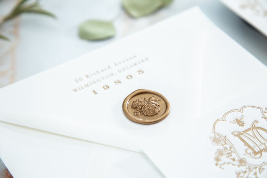 Elevate your wedding stationery with exquisite addons like wedding detail cards, wax seals, vellum wraps, and more.